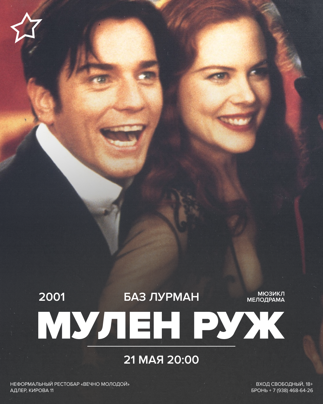 На экране рестобара фильм «Мулен Руж». Баз Лурман, 2001г, мюзикл / мелодрама