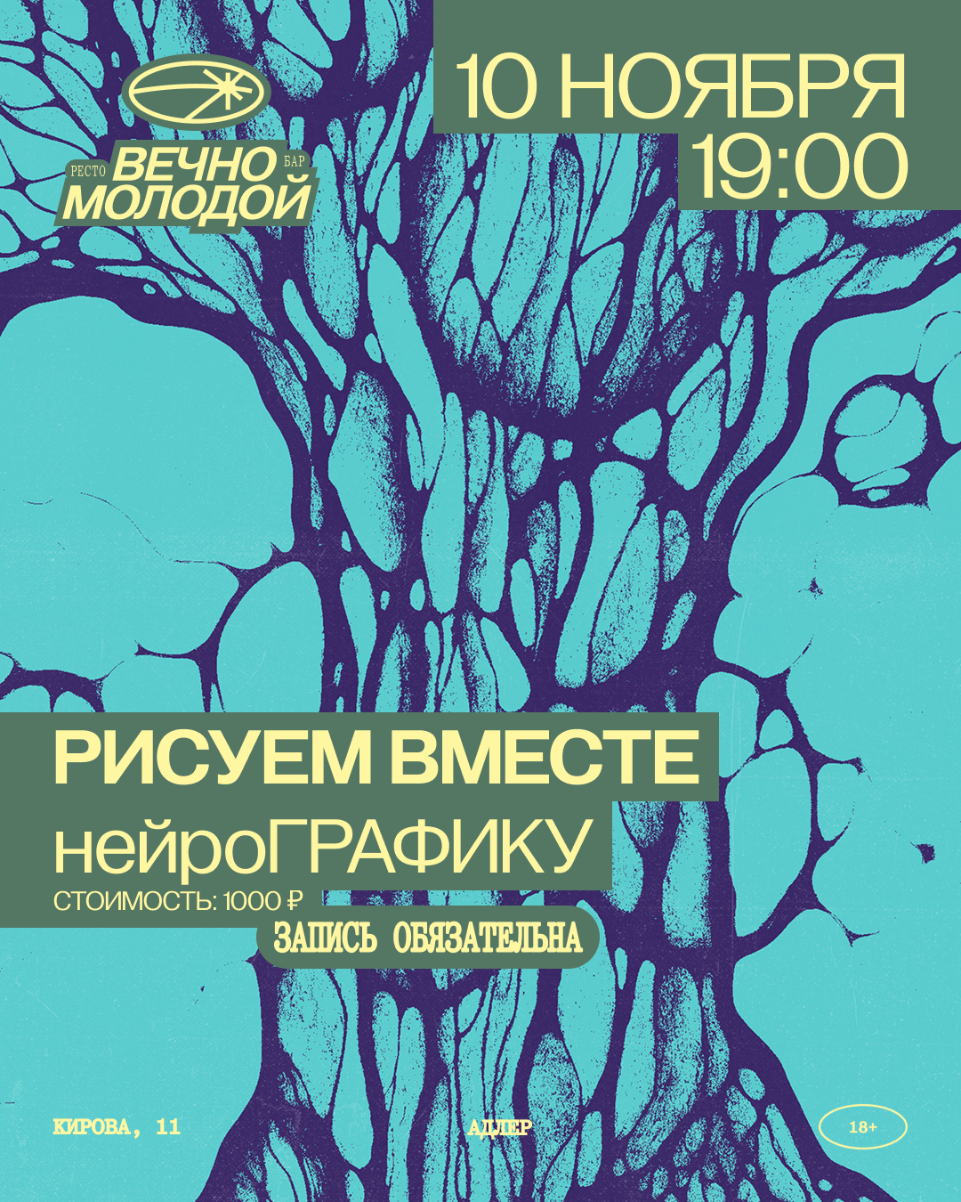 Новинка в баре «Вечно Молодой»! Сотри лишнее. Нарисуй новое возможное. Приглашаем вас на мастер-класс по нейрографике. Творческий метод, который помогает найти новые идеи через рисование по специальным алгоритмам. Все материалы включены в стоимость.