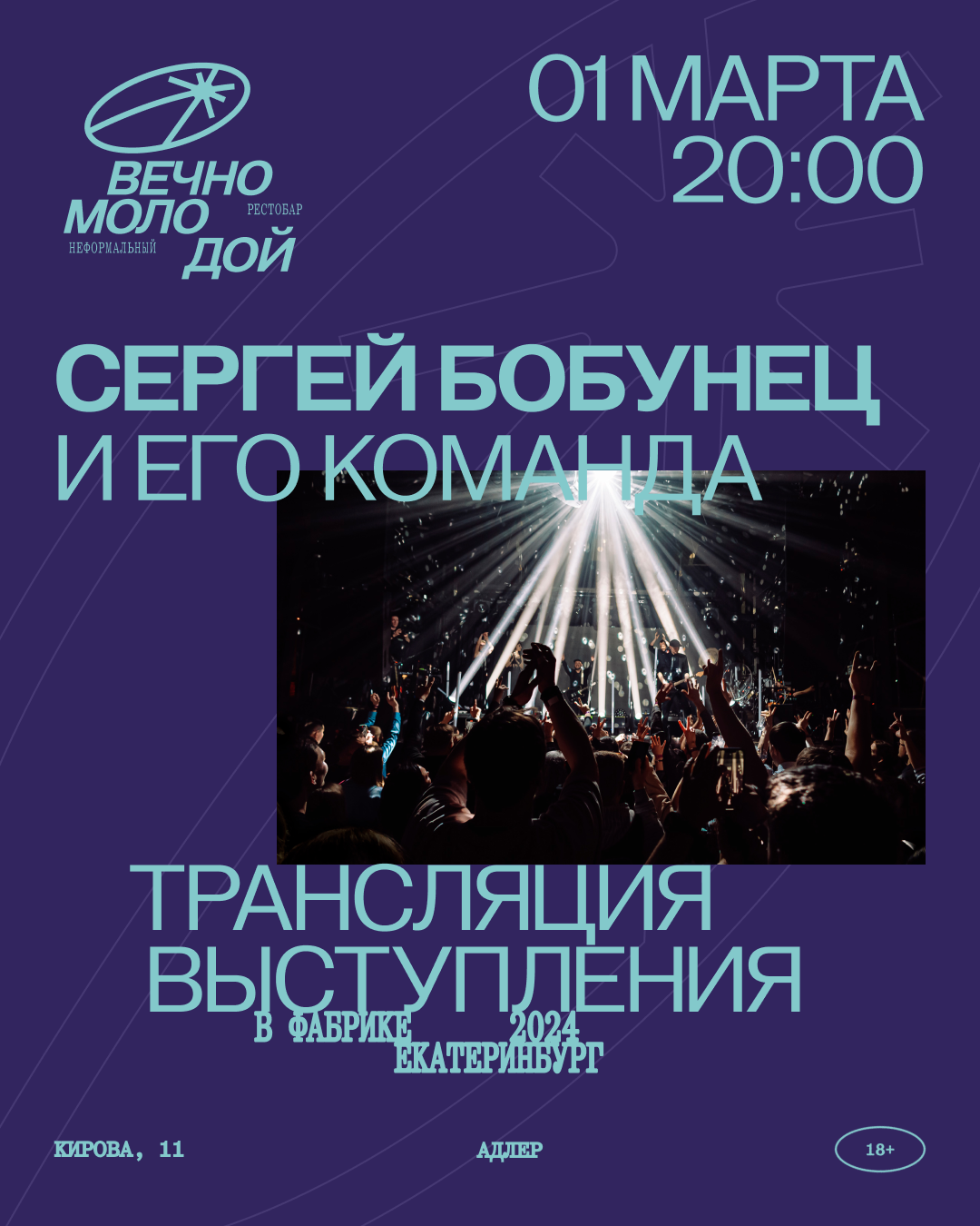 Трансляция концерта Сергея Бобунца и его команды в клубе «Фабрика», 2024г, Екатеринбург