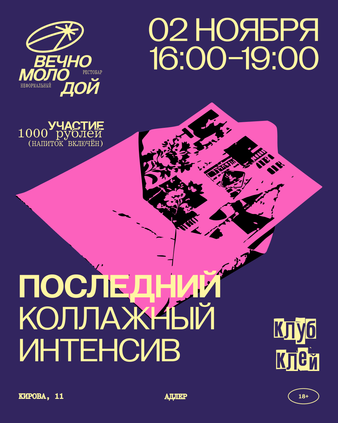 ПОСЛЕДНИЙ коллажный интенсив! В это воскресение проведём последнюю встречу коллажного клуба «Клей» в баре «Вечно Молодой» и присоединимся к международному движению Postcrossing!