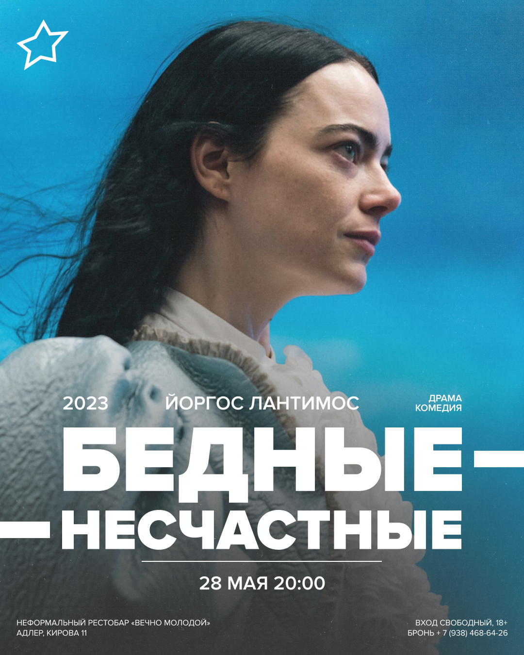 На экране рестобара фильм «Бедные-несчастные». Йоргос Лантимос, 2023г, драма / комедия