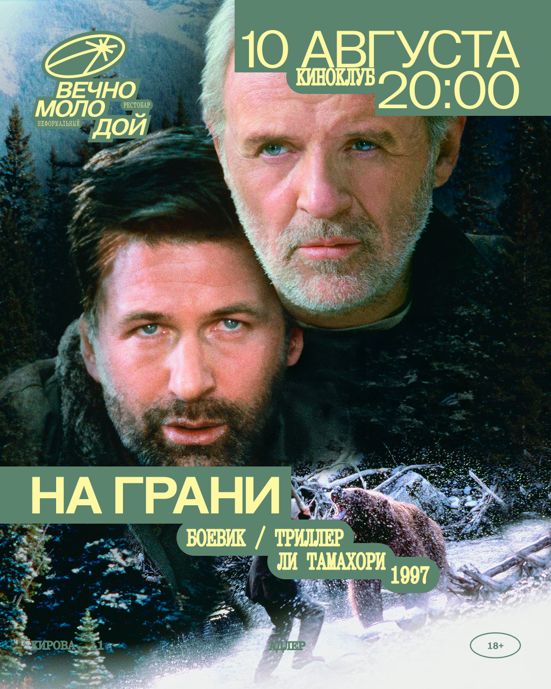 Начало в 20:00, бронь места в кинозале