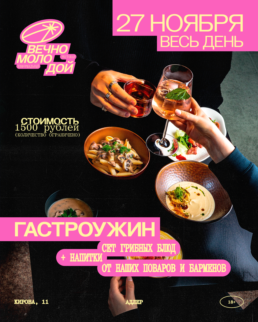 27 ноября — Гастроужин: Сет грибных блюд + напитки от наших поваров и барменов! Провожаем осень с теплом и вкусом!